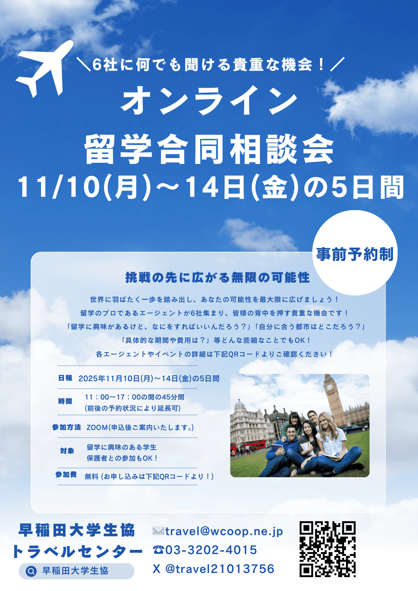 早稲田大学生協では、留学の問い合わせやお申込を多くいただいております。