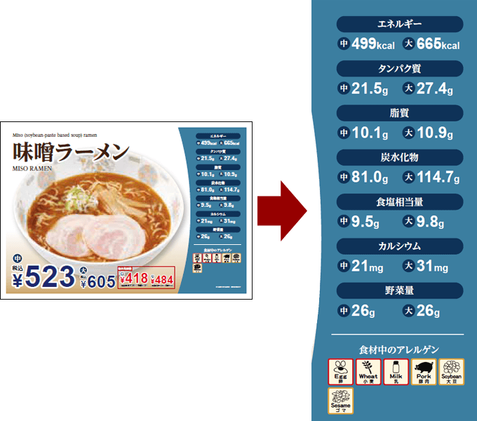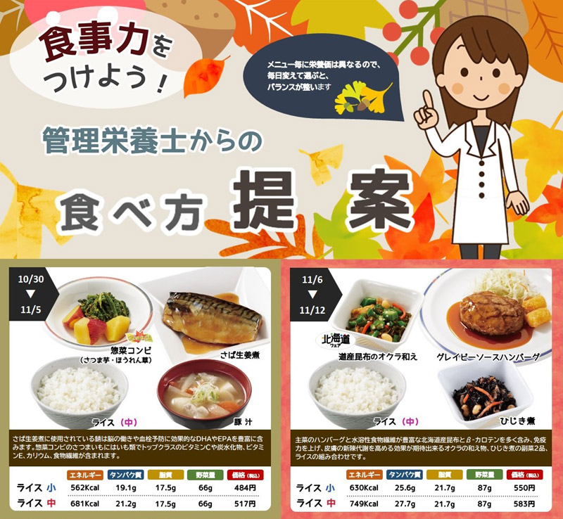 ※栄養価表示は食堂利用の場合にのみ表示がされます。